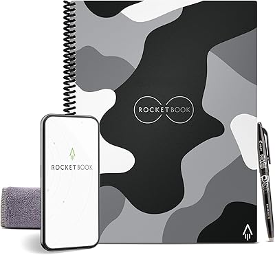 Rocketbook Core Reusable Spiral Notebook, Letter Size 8.5x11, Camo - Dotted Pages, App-Connected, Erasable, Durable Cover, Ideal for School, Work, and Creative Projects
